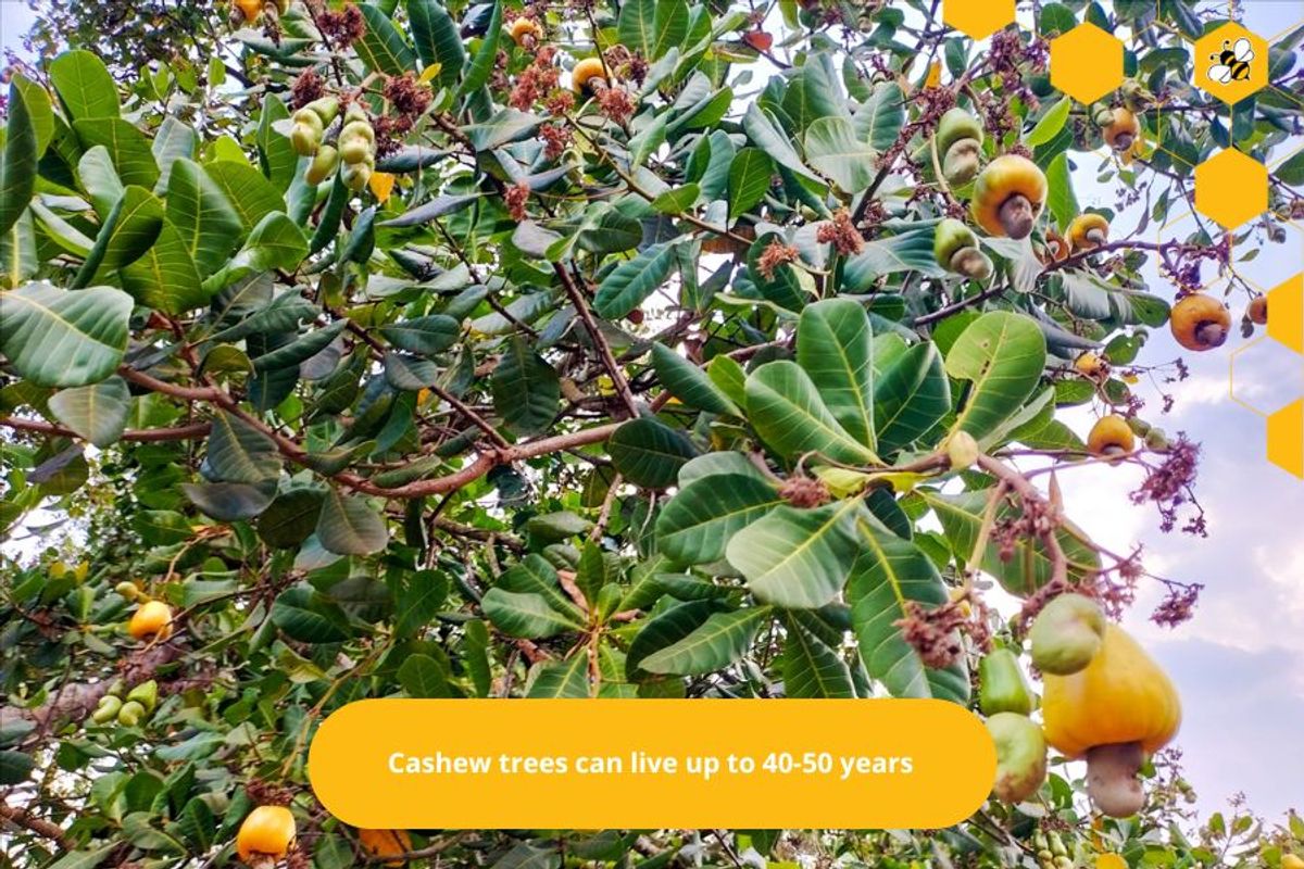 Cashew trees have a lifespan of up to 40-50 years, and usually give stable yields for 10 to 20 years after planting.