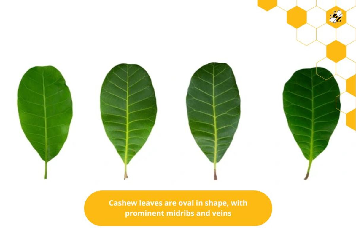 Shape: The cashew leaves are oval, with prominent veins and midribs. Each leaf ranges in size from 10 to 20 cm, and in width from 7 to 12 cm.