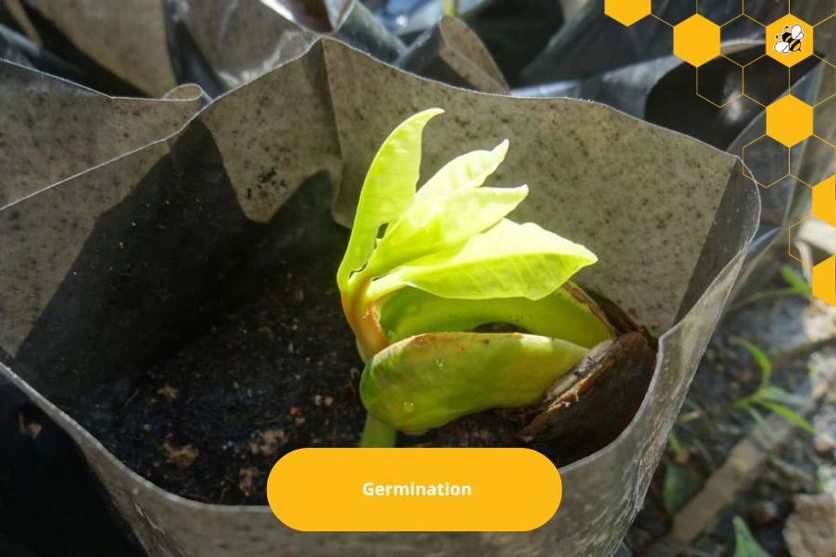 The process of germination and growth of a cashew tree takes place through the following stages:
