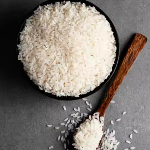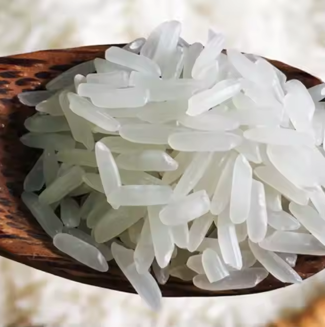 Long, slender rice grains, clear white.